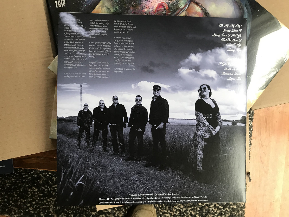 The Cosmic Trip Advisors hail from West Lothian in Scotland and are a rock ’n’ roll band with a heart of soul. Rock ’n’ Soul, if you will. In their world, Iggy can rub shoulders with Keef, Dolly can pinch Jimi on the arse & Macca can launch a goober at Rotten while Gram hums his approval from underneath a dusty old cactus...it's all good in the gumbo soup. Can you dig it? ... more